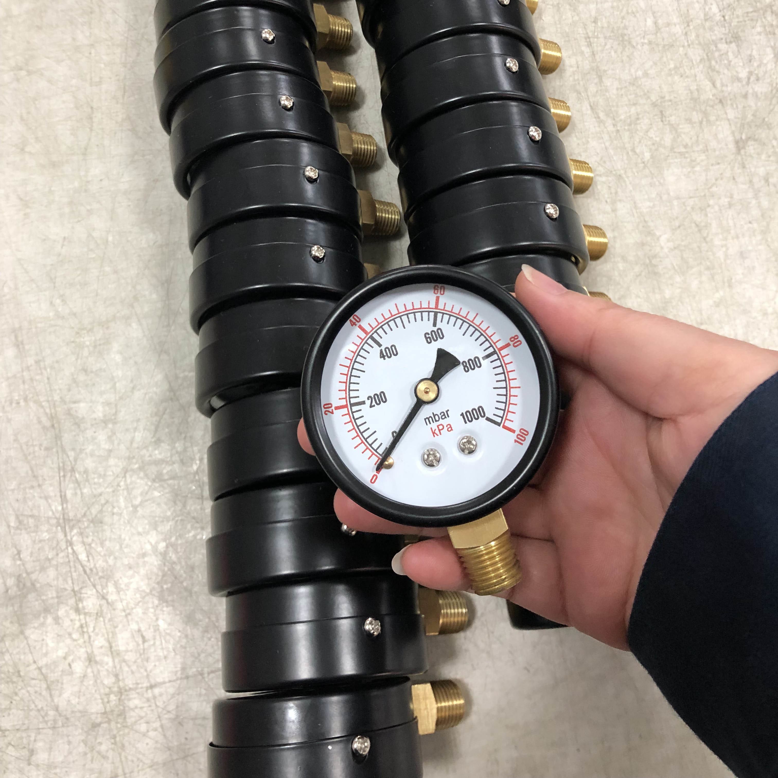 Our 2.5-inch (60mm) Bourdon Tube Low Pressure Gauge is a widely used mechanical pressure measuring instrument featuring a precision bourdon tube type pressure gauge mechanism. With a dual scale of 0-1000mbar and 0-100kPa, this bourdon pressure gauge delivers reliable readings for countless industrial applications. The black steel case and brass radial connection ensure durability and easy installation.